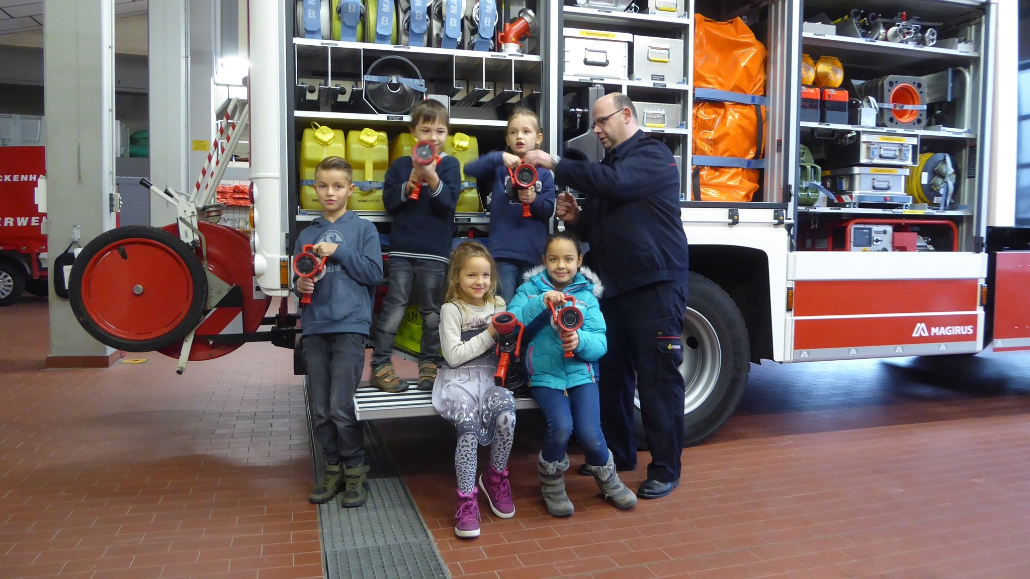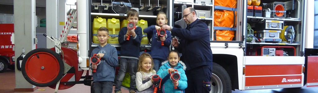 Die Kinder erfahren auch, dass der Unterhaltung der Feuerwehr Gemeindeaufgabe ist und ein weiteres Thema ist das Schätzen der Anschaffungskosten für Fahrzeuge, Drehleiter usw.